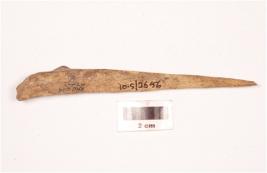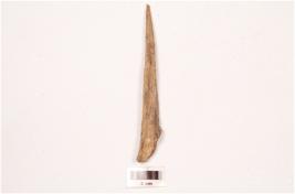 | Description / विवरण | Bone point with pointed on one end and broad on other end. Polished surface and hollow surface of bone narrow visible on one side. |