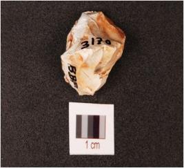 | Description / विवरण | A chert core with prepared platform and five blade scars on the surface. |