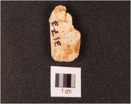 | Description / विवरण | A chert end struck flake, prepared platform and prominent bulb on ventral side. |
