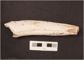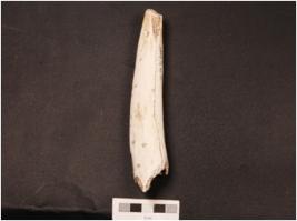 | Description / विवरण | Horn point with a polished surface, both the ends are broken, porous interior and cracks visible on surface. |