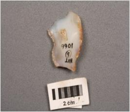 | Description / विवरण | Side scraper with a use-wear marks on cutting edges, uneven surface. |
