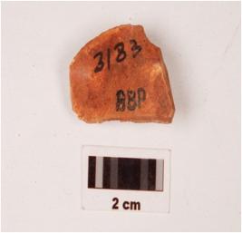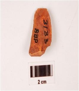 | Description / विवरण | A chert end struck flake, prepared platform and prominent bulb on ventral side. |