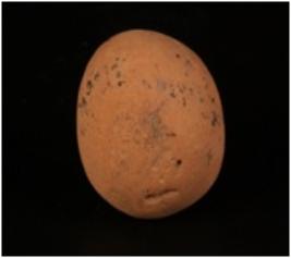| Description / विवरण | Handmade terracotta round shaped sling ball small in size and surface is treated with a wash in dull red colour. |