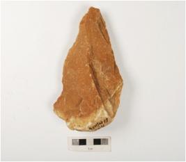 | Description / विवरण | A bifacial handaxe made on quartzite with flake scars on both sides, cortex on thick butt end and irregular retouched edge and pointed anterior. |