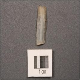 | Description / विवरण | Chalcedony parallel sided blade with a single mid ridge, used wear mark on cutting edges. |