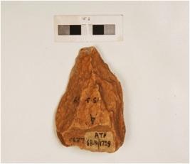 | Description / विवरण | A unifacial side scraper on a side struck flake with flake scars on dorsal and irregular retouches on working edge. |