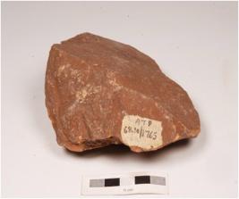 | Description / विवरण | Handaxe made on a quartzite with flake scars on both sides, irregularly retouched edge and made by employing block on block technique. |