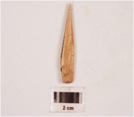 | Description / विवरण | A small bone point, plano convex in section, slightly broken at one end, pointed at other end, polished both sides and smooth surface. |