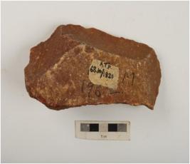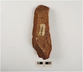 | Description / विवरण | A bifacial handaxe made on quartzite with flake scars on both sides, sharp pointed anterior end, prepared platform and diffused bulb on ventral side. |