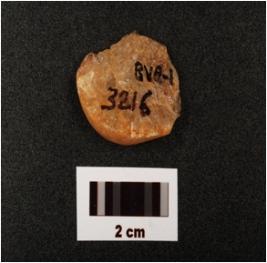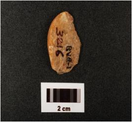 | Description / विवरण | A flake made on quartz, cortex visible on dorsal side, use wear marks along cutting edges, |