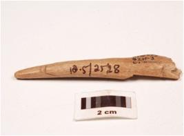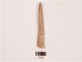 | Description / विवरण | Fragment of a bone point, circular in section, slightly broken at one end, pointed at other end, polished both sides and smooth surface. |