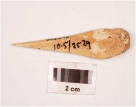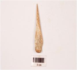 | Description / विवरण | A small bone point with rectangular in section, slightly broken at broad end, pointed at other end, porous at end polished both sides and smooth surface. |