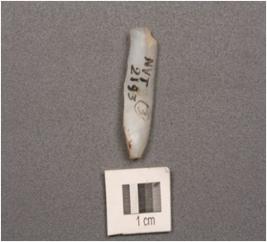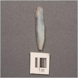 | Description / विवरण | Parallel sided blade with use-wear marks on cutting edges, prominent double ridge on dorsal with bulb on proximal end. |