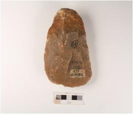 | Description / विवरण | A cleaver, with broad cutting edge with striking platform on cortex and soft hammer technique. |