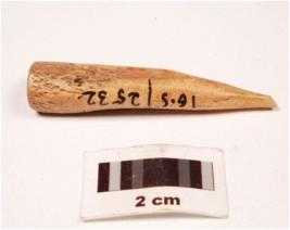 | Description / विवरण | A bone point with sharp pointed one end, polished and surface. |