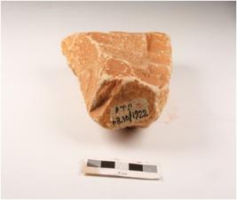 | Description / विवरण | Cleaver with broad working edge with striking platform and flake scars on a side. |