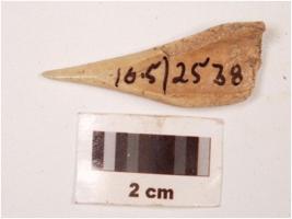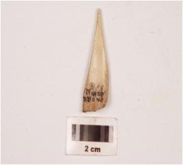 | Description / विवरण | Fragment of a bone point with plano-convex in section, slightly broken at one end, pointed at other end and polished surface. |