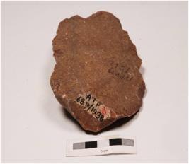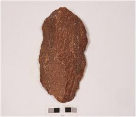 | Description / विवरण | An oval shaped unifacial handaxe on end struck flake with alternative flakings on dorsal, ridge on dorsal prepared platform and positive bulb on ventral edges sharpened by soft hammer technique. |