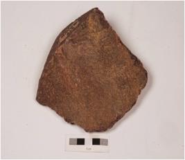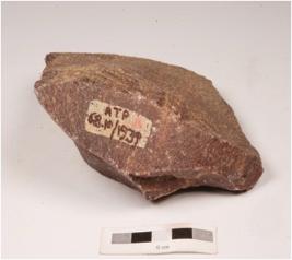| Description / विवरण | Cleaver made on quartzite end struck flake with irregularly retouched edge, prominent bulb on ventral side, flake scars on dorsal side and prepared platform. |