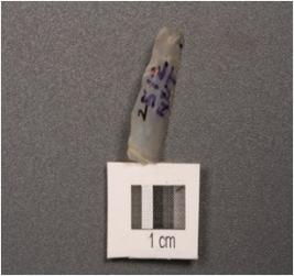 | Description / विवरण | Chalcedony parallel sided blade with a wavy ridge, use wear mark on cutting edges. |