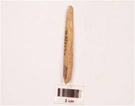 | Description / विवरण | Fragment of a bone point with slightly broken both ends, polished both sides and smooth surface. |