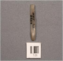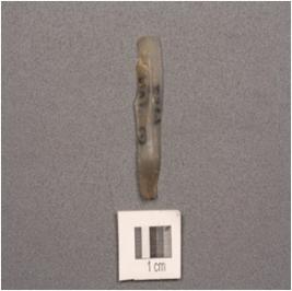 | Description / विवरण | Chalcedony blade with use-wear marks on cutting edges, mid-ridge on a dorsal surface, prominent bulb, triangular in section. |