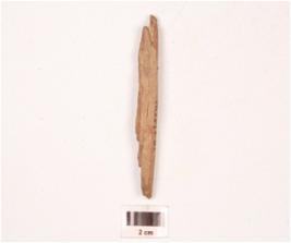 | Description / विवरण | Fragment of a bone point with rectangular in section, slightly broken both ends, polished both sides and smooth surface. |