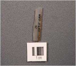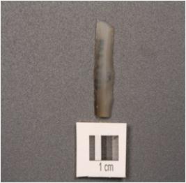 | Description / विवरण | Chalcedony parallel sided blade with double ridge, use wear marks on cutting edges, heat treatment given on raw material, trapezaidal section. |