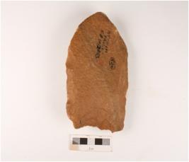 | Description / विवरण | A cleaver with broad working edge, striking platform cortex, two flake scars on surface and soft hammer technique use. |