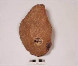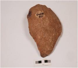 | Description / विवरण | A unifacial handaxe made on flake with alternate retouches on one side by block on block technique, cortex on other side, pointed top and sharp lateral cutting edges with irregular retouches. |