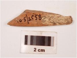 | Description / विवरण | Fragment of a bone point with plano-convex in section, smooth surface, slightly broken both ends and polished. |