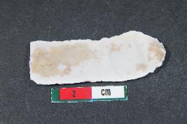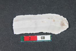 | Description / विवरण | Fragment of blade having two dorsal ridges, bulb of percussion on ventral side and smooth surface. |