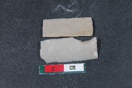 | Description / विवरण | Fragment of blade with one dorsal ridge and smooth surface. The smaller blade has two dorsal ridges. |