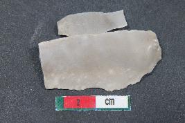 | Description / विवरण | Fragment of a Blade with one dorsal ridge and bulb of percussion on the ventral side having smooth surface. Shorter fragment along with two dorsal ridges and bulb of percussion has Length equivalent to 2.1 cm. |