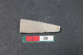 | Description / विवरण | A fragment of a blade having two dorsal ridges. It has smooth surface. |