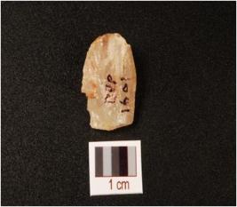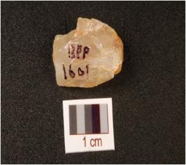 | Description / विवरण | A small flake, made on quartz, flake scars are visible on surface and use wear marks on edges. |