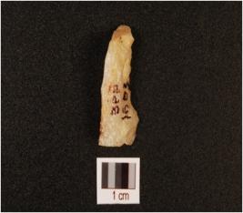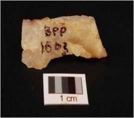 | Description / विवरण | A blade made on quartz with ridge on dorsal and use wear on edges. |