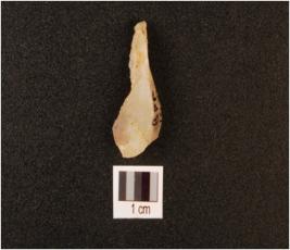 | Description / विवरण | A flake, made on quartz, prepared platform, flake scars are visible, ridge on dorsal and use wear marks on edges. |