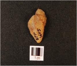 | Description / विवरण | A flake made on quartz with prepared platform, flake scars are visible on dorsal and use wear marks on edges. |
