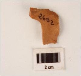 | Description / विवरण | A chert flake with flake scars on surface, colour and bulb on ventral. |