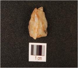 | Description / विवरण | A small flake made on quartz, flake scars are visible, use wear marks on edges and rough surface. |
