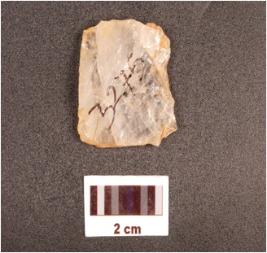 | Description / विवरण | Quartz blade user marks along the cutting edge and prepared platform. |