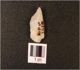 | Description / विवरण | A flake made on quartz, flake scars are visible and use wear on cutting edges. |