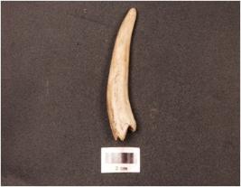 | Description / विवरण | Horn point with a polished surface, porous interior, pointed at one end, broad at other end and circular cross section. |