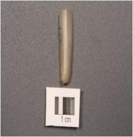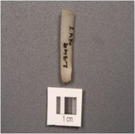 | Description / विवरण | Chalcedony parallel sided blade with a single ridge, prominent bulb. |