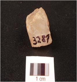 | Description / विवरण | Fragment of a quartz core with prepared platform and four blade scars. |