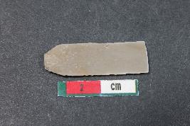 | Description / विवरण | A fragment of a blade having two dorsal ridges with bulb of percussion. It has smooth surface. |