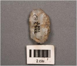 | Description / विवरण | Agate flake with use-wear marks on cutting edges, cortex is visible, uneven surface. |