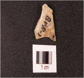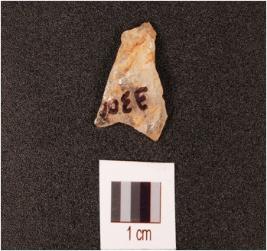 | Description / विवरण | A quartz end struck flake with prepared platform and bulb absent. |