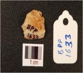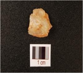 | Description / विवरण | A small flake made on quartz with prepared platform, ridge on dorsal and use wear on edges. |